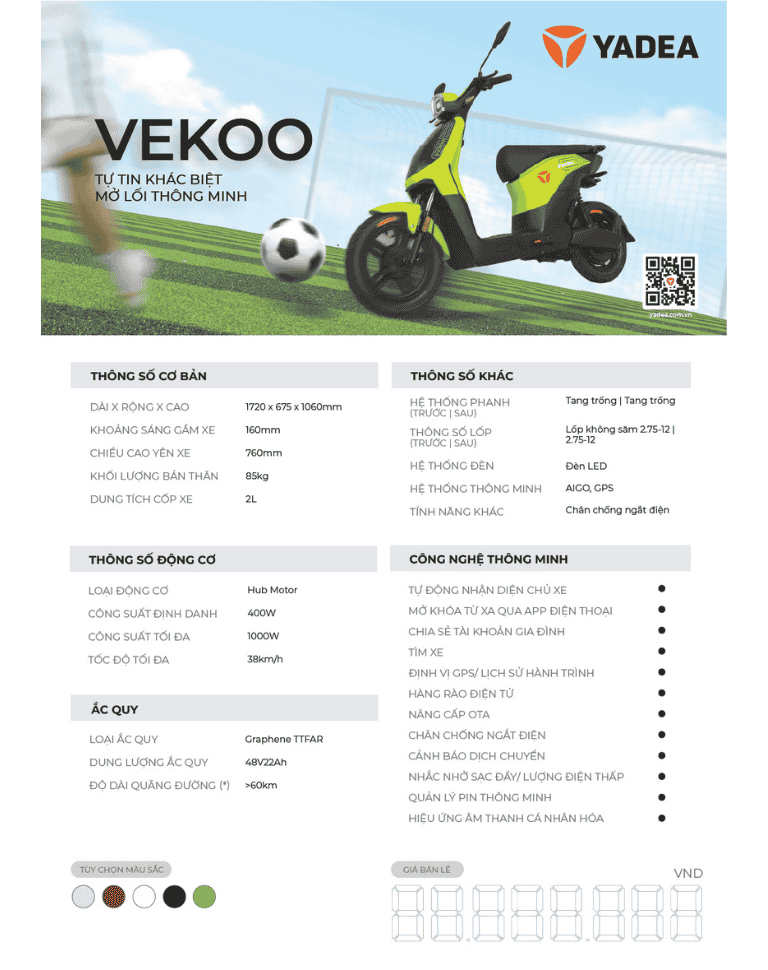 Công nghệ thông minh | Ứng Dụng Thông Minh (APP), Mở Khóa Bluetooth, Mở Yên Xe Một Chạm Mở Khóa Từ Xa Qua APP, Định Vị GPS, Lịch Sử Hành Trình Hàng Rào Điện Tử, Cảnh, Báo Xe Bị Di Chuyển Bất Thường Tùy Chỉnh Hiệu Ứng Âm Thanh, Chân Chống Điện |
